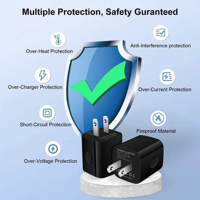 Safety Protection: Upgraded built-in smart IC recognition technology, use synchronous rectification scheme, effectively reduce internal temperature and noise. USB plug can intelligently identify potential risks and automatically stop charging when power is full, protection against overcharging, over currents and overheating.