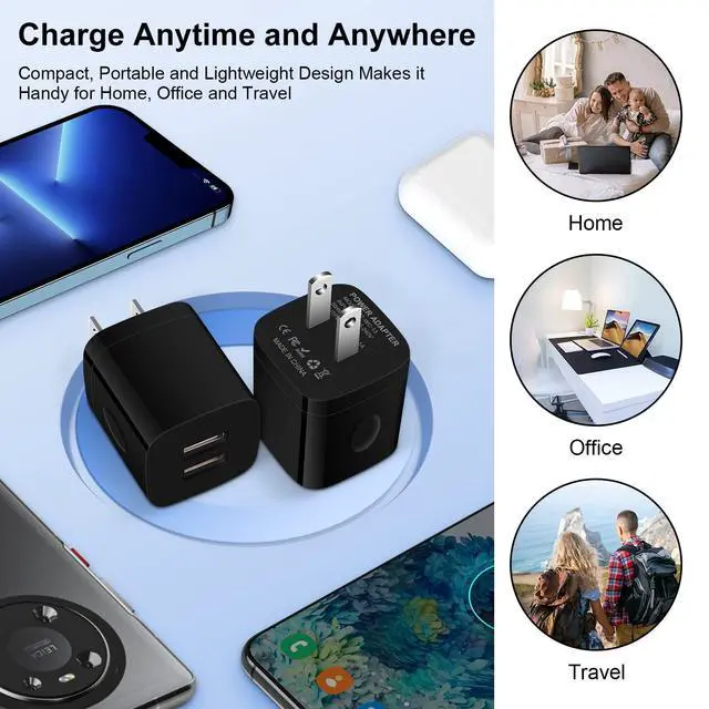 Fast Wall Charger Compatible with - iPhone 16/16 Pro/16 Pro Max/16 Plus/15/15 Pro/15 Pro Max/15 Plus/14/14 Pro Max/14 Plus/13/13 Pro Max/13 Mini/12/12 Pro Max/12 Mini/SE/11/11 Pro/11 Pro Max/XS Max/XR/X/8/7/7 Plus/6/6S Plus, Samsung Galaxy S24/S23/S22/S21/S20 Ultra/S10/S10e/S9 Plus/S8/Note 20 10 9 8, A54 A14 A12 A32 A42 A52 A10E A20 A50 A70, LG Stylo 5/4/3/2 G8 G7 V60 V50 V40 ThinQ G6 G5 V20 V30, Moto G Stylus/G8 G7 Power/Play G6 G5 Z4 Z3, Google Pixel 9 Pro XL 8a 8 Pro 7a 7 6a 6 5 4 3a 3 2 XL