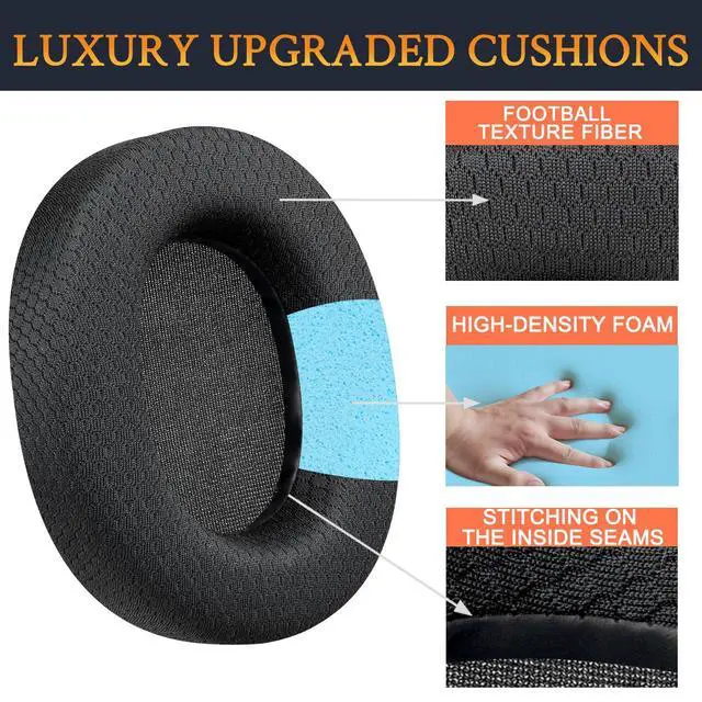 Rugged Durability: Made of the Football Texture Fiber, our earpads are sweatproof, non-slip and durable, providing you an enhanced soft touch during long-term wearing.