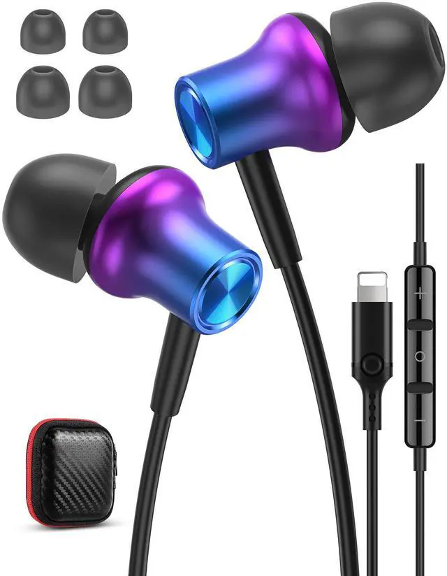 Design Wired Earbuds for Lightning Headphones Magnetic Wire Earphones Corded with Microphone Volume Control for iPhone 14 Plus 13 Pro Max 12 Mini 11 10 XS XR Purple