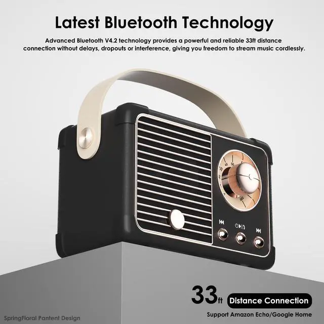 Latest Bluetooth Technology & Aux Input/TF Card Option: This cute vintage speaker has built-in wireless capabilities to stream from all Bluetooth-enabled devices, such as smartphones, laptops, tablets, etc. Advanced Bluetooth V4.2 technology provides a powerful and reliable 33ft transmission-distance connection without delays, dropouts, or interference, giving you freedom to stream music cordlessly. It also supports a 3.5mm Aux input option for desktop PCs or devices without Bluetooth function.