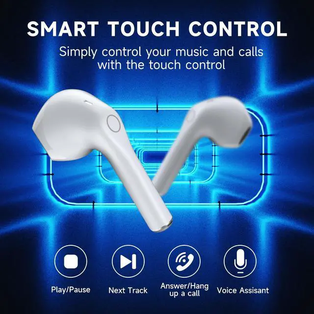 [Convenient Touch Control] Our wireless earbuds have a smart touch control function, you can easily play/pause music, skip songs, activate voice assistant, and answer calls with just a tap of the earbuds. With the built-in microphone, you can experience clear calls even in noisy environments, and easily activate Siri or Google Assistant.