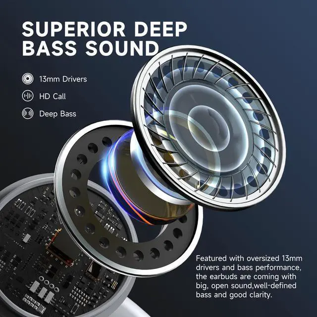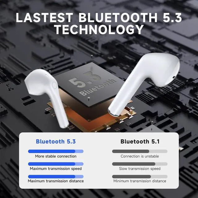 [Advanced Bluetooth Technology] Our earbuds adopt Bluetooth 5.3 technology, which greatly improves the transmission speed and provides a low-latency listening experience. With support for A2DP, AVRCP, HFP, and more, you can enjoy seamless connectivity and superb audio quality.