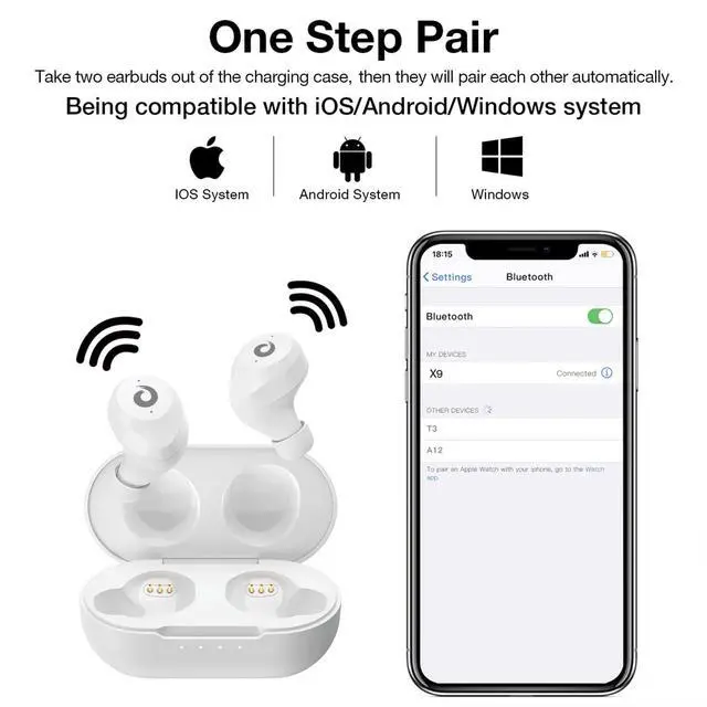 Smart Touch & Waterproof: Simple and convenient control system. Tap once to play/pause music and answer calls, double tap to skip forward/backward, long press to adjust the volume, and long press for 2 seconds to refuse a call. Nanotechnology prevents earbuds from being damaged by sweat and rain, making them suitable for sports. Enjoy wonderful music while exercising or showering.