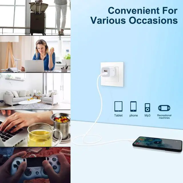 Safe Protection Charger Box - This durable charger block is equipped with a built-in smart IC chip and made from fireproof PC material. It can automatically recognize any USB device and protects against overcharging, overheating, overcurrent, overvoltage, and short-circuiting. Charging stops when the battery is full, ensuring all-around protection.