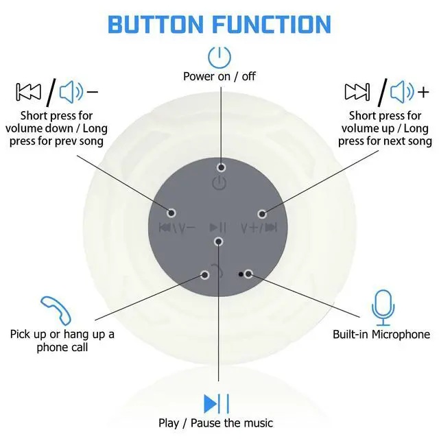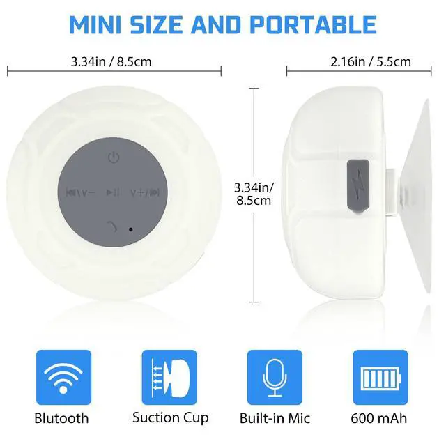 Portable Bluetooth Shower Speaker - Enjoy your favorite music anytime, anywhere without worrying about water. Perfect for use in the bathroom, kitchen, beach, swimming pool, washroom, or on a boat.