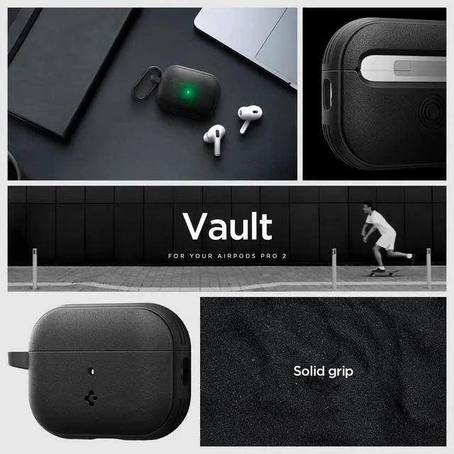 Vault Designed for Airpods Pro 2nd Generation Case (2022/2023/2024) Drop Protection Cover with Carabiner - Matte Black