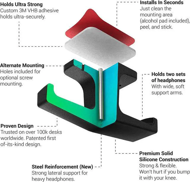 The Anchor (2 Pack) - The Original Under-Desk Headphone Stand Mount Holder