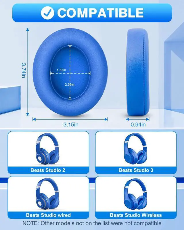 COMPATIBLE MODEL: Each cushion is rigorously tested to ensure we exceed expectations. The memory foam earpads are suitable for Beats Studio 2.0 Wired/Wireless B0500 / B0501 & Beats Studio 3.0 headphones (Not for Beats SOLO headphones).