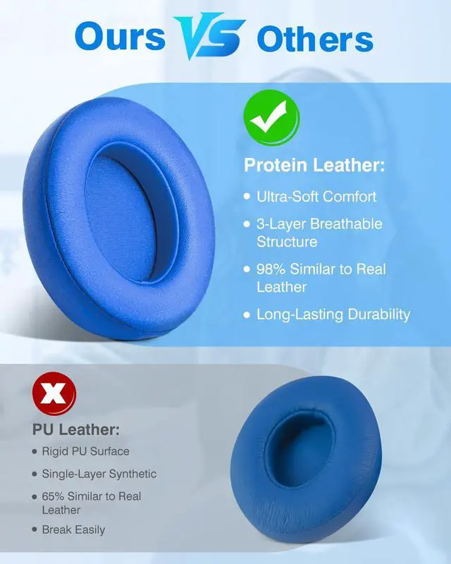 PREMIUM MATERIAL: Replacement earpads for Beats studio headphones made of high-quality professional-grade protein leather ear cushions designed for long-term crack-free usage. Wear comfortably like original earpads. We also added stitching and durable glue inside each ear cushion.