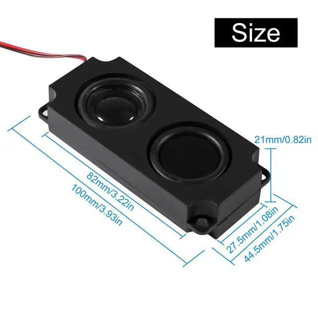 • 8 ohm 5 watt; can operate at 3.3V or 5V, with JST-PH2.5mm-2 pin terminal; full frequency cavity; dimensions 0.83"D x 1.77"W x 3.94"H.