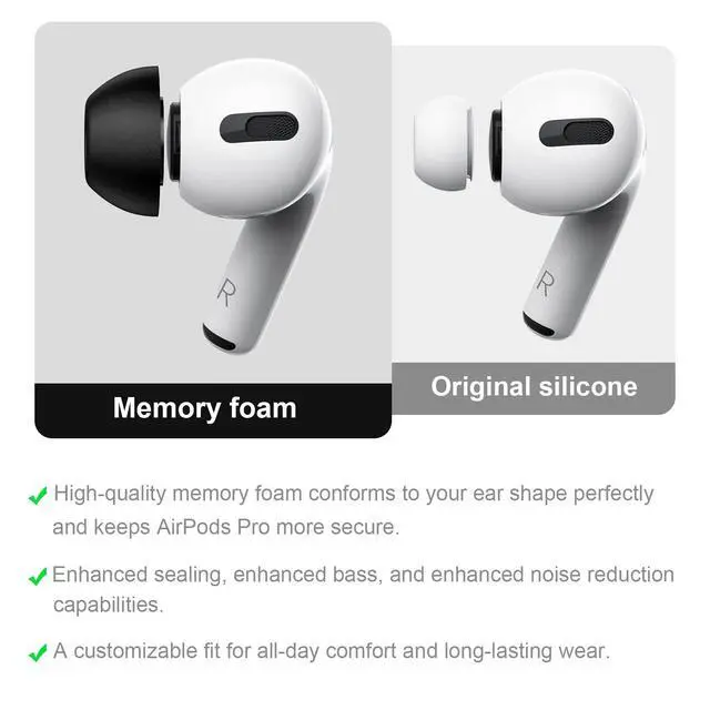 For AirPods Pro 1 & 2 Soft high-quality memory foam tips that reduce ear pain from silicone tips. Only for AirPods Pro (1st & 2nd generation), not for AirPods Pro 3. For Pro 3, please select the Pro 3 foam tips in our store.