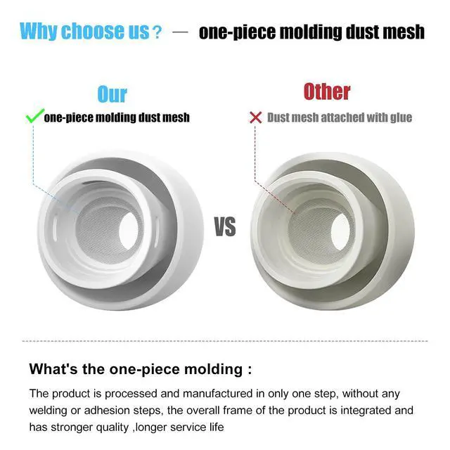 Dust Guard Screen: Each Airpods Pro tip includes a built-in dust guard screen. The one-piece molding process enhances firmness and stability, preventing them from falling off, even during sweat-inducing activities.