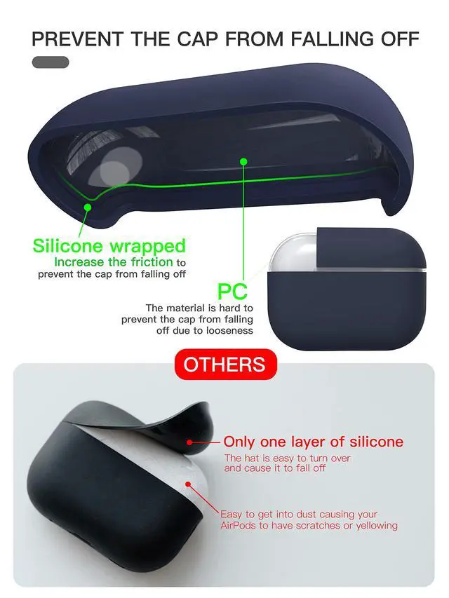 Triple Layer Structure Design: Internal PC material offers easy installation. Middle liquid silicone protects airpods pro 2 from bumps and drops. The outer advanced barrier can prevent airpods pro 2nd generation from dirt, scratches, oil, and fingerprints.