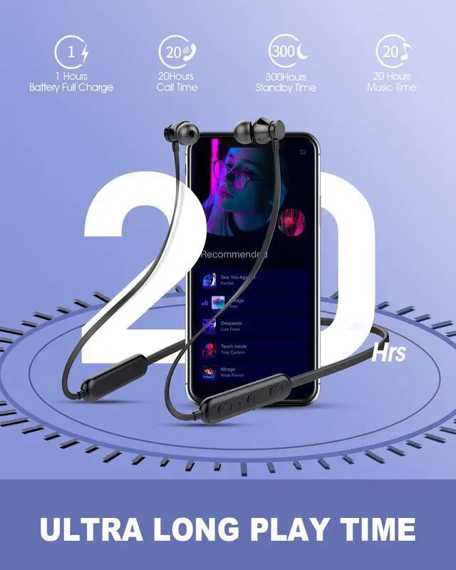 20-Hr Excellent Long Battery Life: These Bluetooth headphones have a long lifetime, up to 16 hours continuous talking time, 20 hours music time, 240 hours standby time, and only take around 1.5 hours to fully charge.