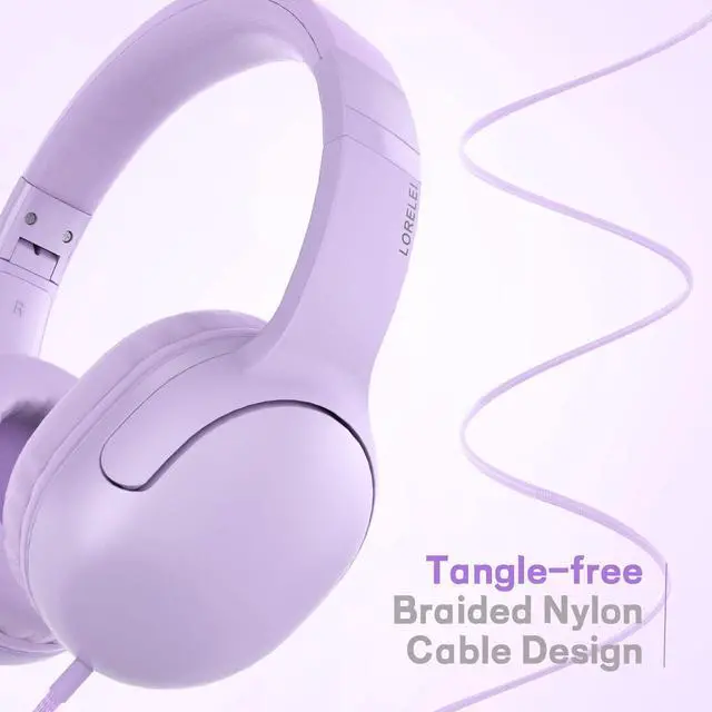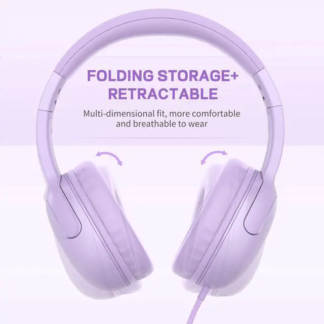 E5 Wired Headphones for Kids Foldable & 3.5mm Jack Tangle Free Nylon Wire Stereo On Ear Headsets for Kids/Children/School/Tablet/Ipad/Kiddle/Plane (Purple)