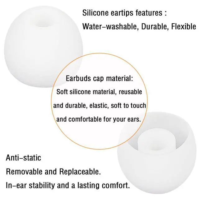 2. Earbuds cap material: Soft silicone material, reusable and durable; elastic, soft to touch, and comfortable for your ears.