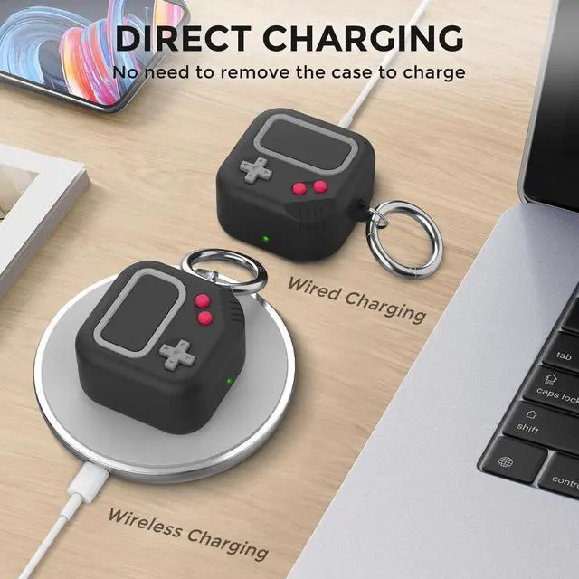 Retro Game Design Case for Buds 2 Pro/Live/Fe, Silicone Case Cover for Men/Women (Black)