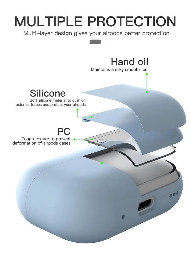 Triple Layer Structure Design: Internal PC material offers easy installation. Middle liquid silicone protects airpods pro 2 from bumps and drops. The outer advanced barrier can prevent airpods pro 2nd generation from dirt, scratches, oil, and fingerprints.