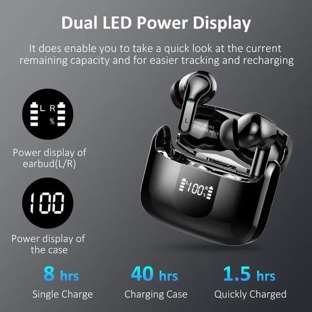 Dual LED Power Display and Upgraded 40H Playback: The dual LED power display on the case helps check the charging status of the earbuds. The earbuds provide 8 hours of playback from a single charge. The lightweight charging case supports 4 recharges for the earbuds, offering up to 40 hours of continuous music time. The Type-C charging port facilitates faster and safer charging, making it perfect for travel and long-lasting music enjoyment every day.