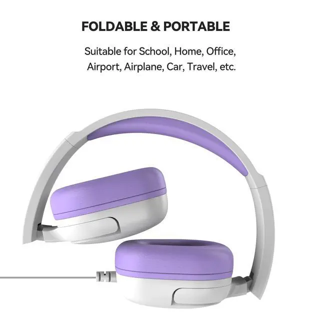 Comfort Wear & Foldable DesignThe ultra-soft earmuffs and over-ear design ensure better isolation from ambient noise and good breathability, so your kids won't feel tired even after long wear. These headphones are foldable and compact, making them convenient for travel and storage.