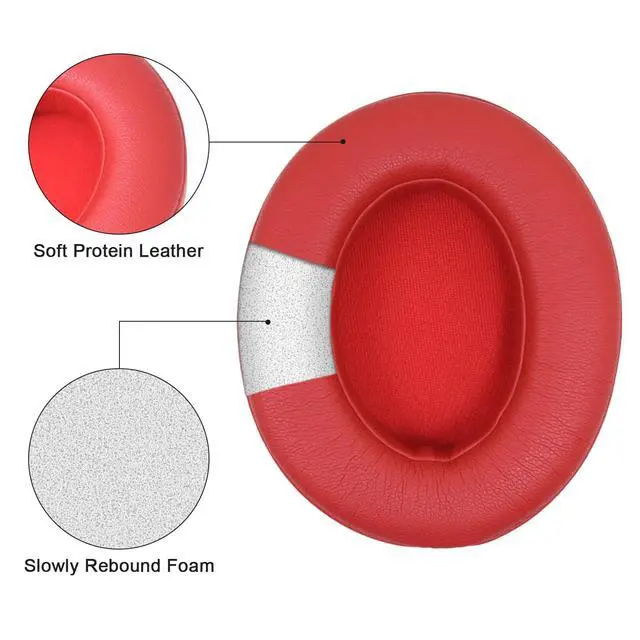 Replacement Ear Pads Cushions Compatible with Studio 3.0/2.0, Headphone Ear Covers with High Density Memory Foam, Soft Leather, Adaptive Headphones Replacement Earpads. (Red)