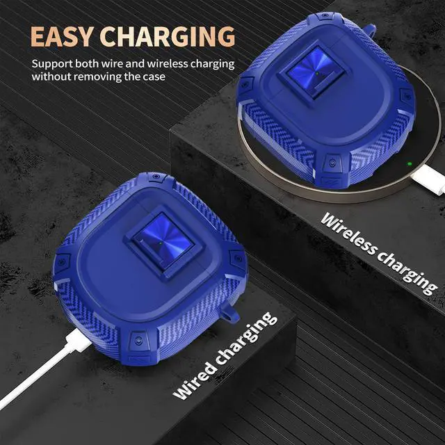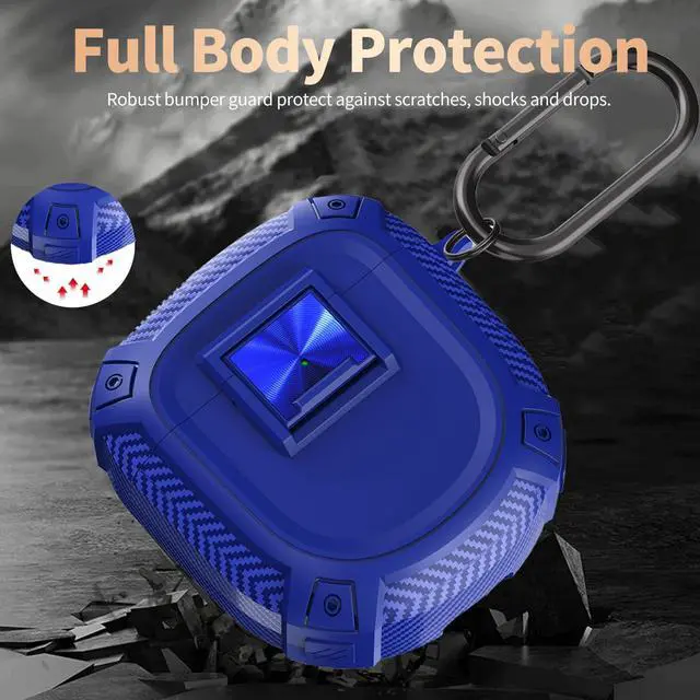 for QuietComfort Earbuds II (2022) / Ultra (2023) Case Cover with Lock Clip&Cleaner kit Pen, Rugged Shockproof Protective Hard Skin with Carabiner Men Women - Blue