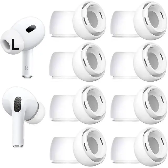 Replacement Ear Tips 8 Sets for AirPods Pro 2nd generation and AirPods Pro 1st generation. These tips fit AirPods Pro earbuds perfectly and are compatible with the original AirPods Pro charging case.