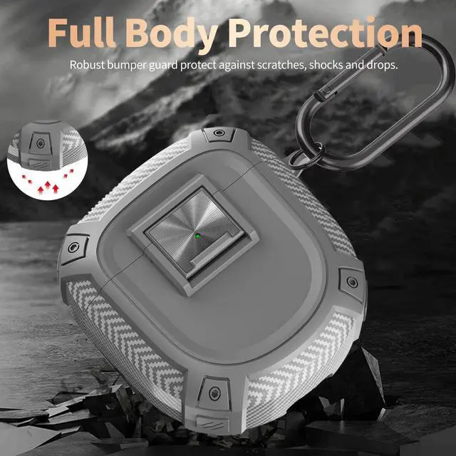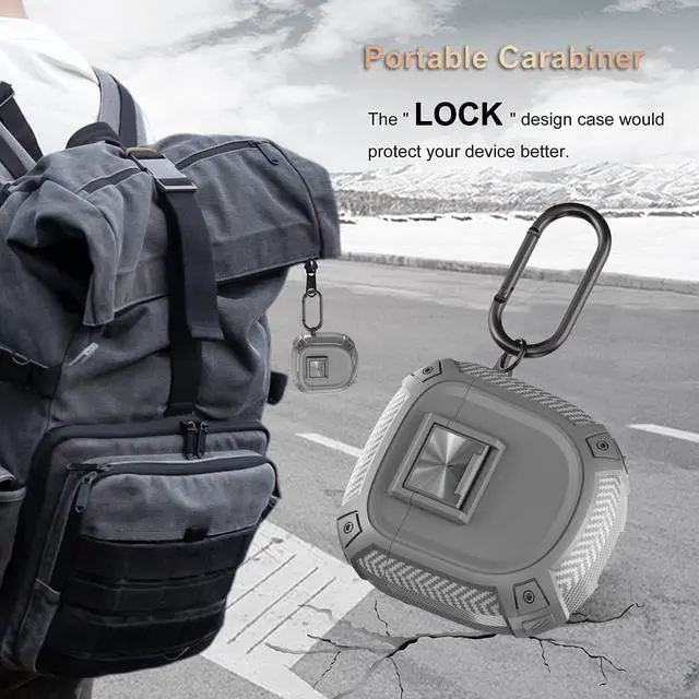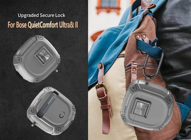for QuietComfort Earbuds II (2022) / Ultra (2023) Case Cover with Lock Clip&Cleaner kit Pen, Rugged Shockproof Protective Hard Skin with Carabiner Men Women - Grey