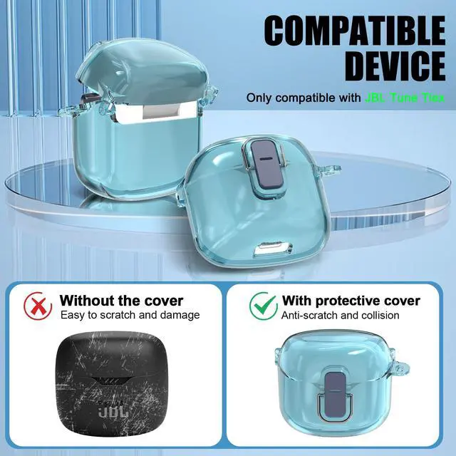 Safety Lock Design: This clear case for JBL Tune Flex is one-piece design prevents the top cover from accidentally falling off and has a safety lock function on the front that securely locks your headphones even if dropped or accidentally opening. Never lose your earbuds.