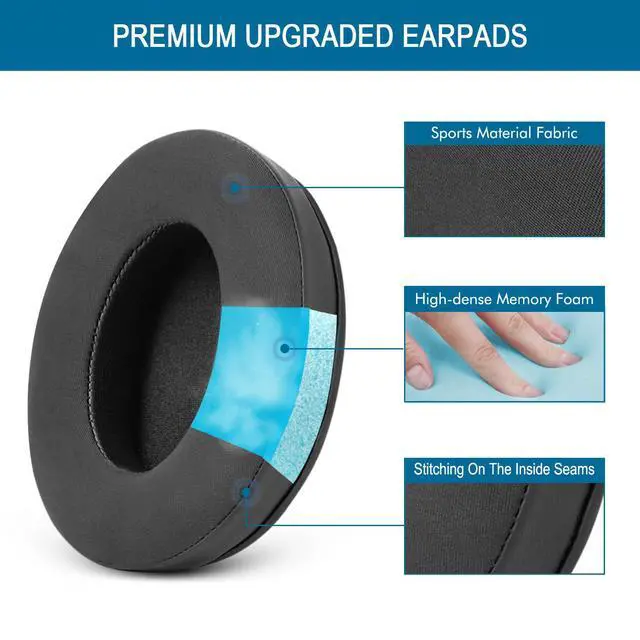 The memory foam ear cups have a slow rebound and are flexible enough to provide all-day softness and comfort around the ears. The top layer uses soft ice silk fabric, which is more breathable and durable than leather materials. The wrap-around ear design is more ergonomic.
