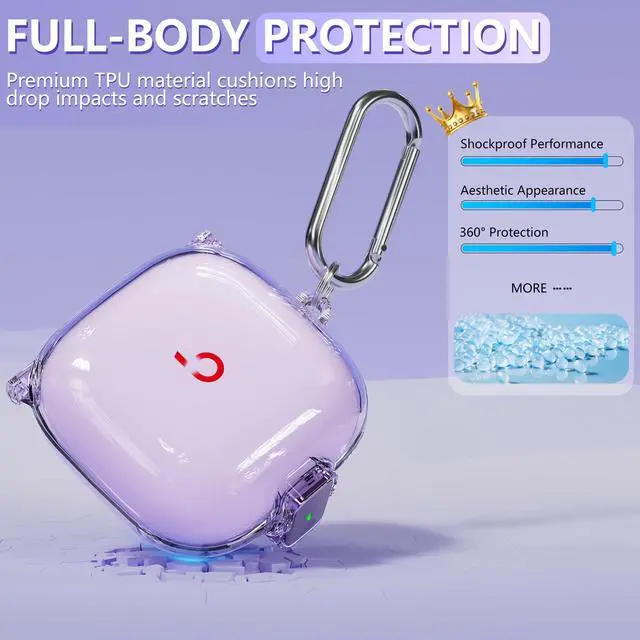 [Quality materials]: The exterior of the protective case is made from high-quality, non-yellowing PC materials, providing excellent protection while enhancing your overall experience. The non-yellowing material keeps your earbuds looking crystal clear, and the lightweight, durable design adds an extra layer of convenience.