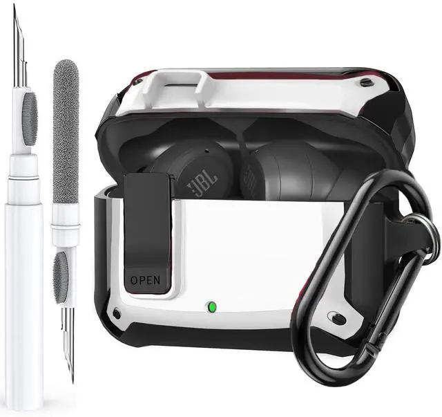 Compatible with Vibe 200TWS/Vibe Beam Case Cover Lock Clip with Cleaner Kit, Cool Protective Cover Men Women with Carabiner for Vibe Beam 2 Charging Case - Black/White