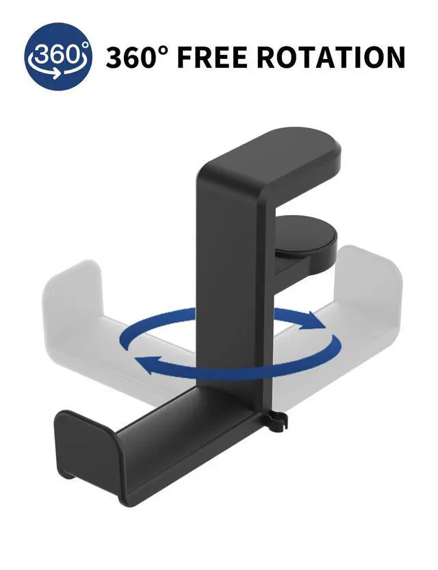 Rotating Headphone Arm: This gaming headphone stand offers 360-degree rotation for easy adjustment to any direction. When not in use, it neatly rotates under the desk for compact storage.