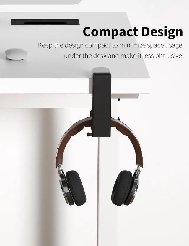Curved Edge & Rubber Pads: Curved edges protect your headphone band, while soft rubber pads and a spring clamp securely hold the headphone stand in place on the desk.
