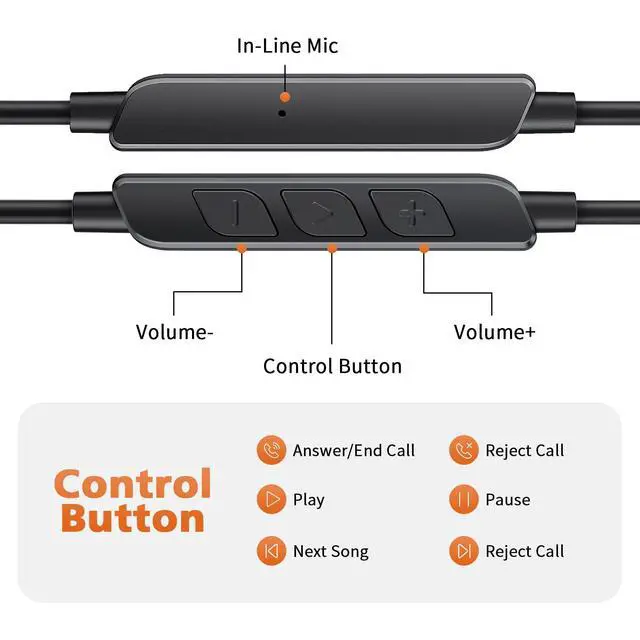 Multifunctional In-line Control: In-line buttons let you play/pause music, adjust the volume, skip/replay tracks, and activate your voice assistant all without needing to touch your phone. The built-in high-quality microphone provides clear sound during calls, making it easy to answer or end calls while on the go.