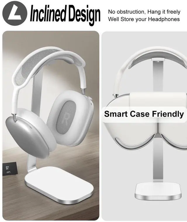 Inclined Design: Upgrade headset stand with inclined design. This allows you to place the headphones freely without the hassle of adjusting the ear pads. It is more convenient to store the headset. Compatible with AirPods Max with Smart Case.