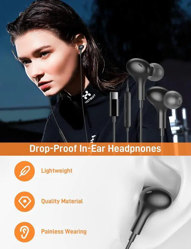 Magnetic In Ear USB-C Earbuds: Each earbud features a powerful magnet embedded in the back, making them easy to roll up and use without tangling; magnets keep the headphones from sliding off your neck when not in use, allowing you to hang them comfortably.
