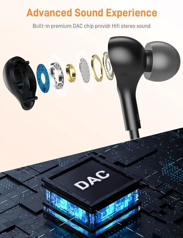Hi-Fi Stereo Sound Type C Earphones: Metal-plated connections significantly reduce issues with poor contact; 1.2 meters in length, these USB C headphones are equipped with a strong DAC chip to ensure high-resolution acoustics, free from buzzing or poppingjust plug and play to enjoy your favorite music.