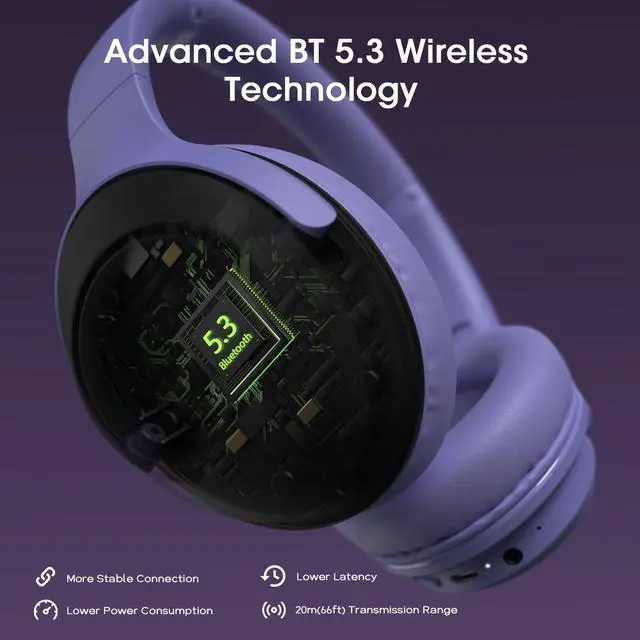 Advanced Bluetooth 5.3 & Crystal-Clear Call Clarity: Enjoy flagship-grade connectivity with Bluetooth 5.3 for stable, low-latency transmission up to 66 feet. The built-in ENC (Environmental Noise Cancellation) microphone isolates your voice, ensuring exceptionally clear calls on these wireless headphones over ear, even in bustling environments.