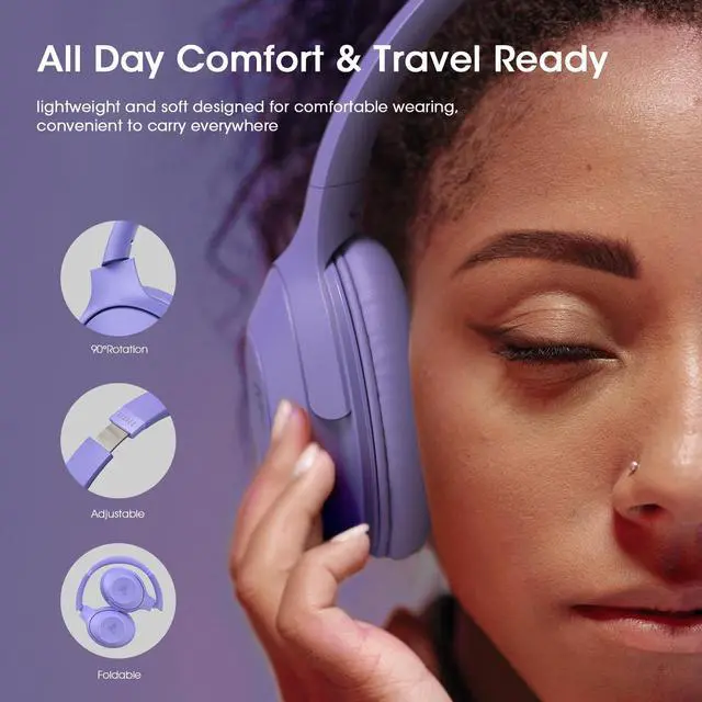 All-Day Comfort with Premium Memory Foam Design: Designed for extended listening sessions, the plush memory foam ear cups and adjustable headband provide cloud-like comfort. This foldable over ear bluetooth headphones design combines lasting comfort with portable convenience for travel, leisure, or focused sessions.