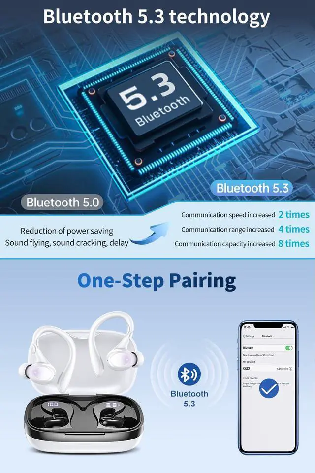 Bluetooth 5.4 & Auto Pairing: The Bluetooth 5.4 chip ensures that the headphones connect quickly and stably within 15 meters. After pairing the devices for the first time, the headphones will automatically connect when you take them out of the charging case.