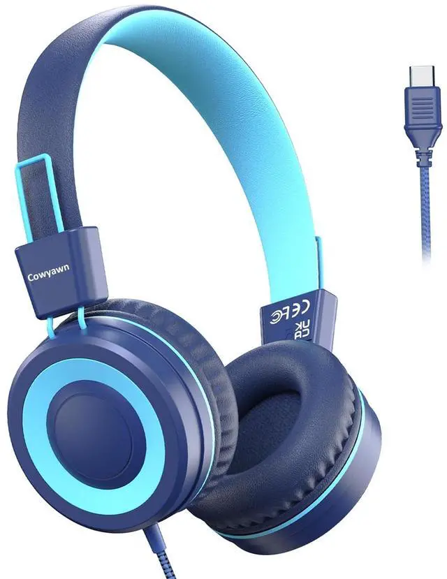 USB Type C Kids Headphones for School, Wired Toddler Headphones, 94dB Volume Limited, HD Stereo Sound, Foldable Lightweight On-Ear Wired Headphones for Kids/Children/Teens/Boys (Dark Blue)