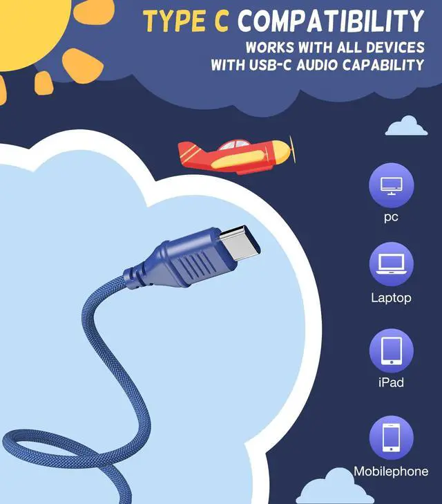 Upgrade USB-C Kids Headphones for SchoolThese wired USB-C kids headphones are designed for a wide range of mobile devices and PCs using the USB Type-C headphone jack. No need for a USB converter, offering hassle-free plug-and-play functionality.