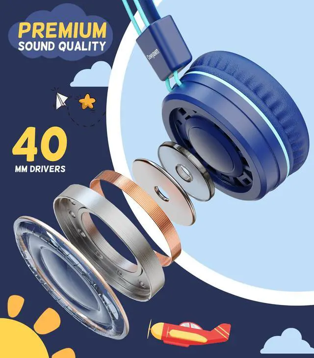 Stereo SoundEquipped with a built-in 40 mm audio driver, these headphones ensure excellent sound quality. They are ideal for studying, listening to music, watching movies, playing games, and socializing, whether at home, in school, or while traveling.
