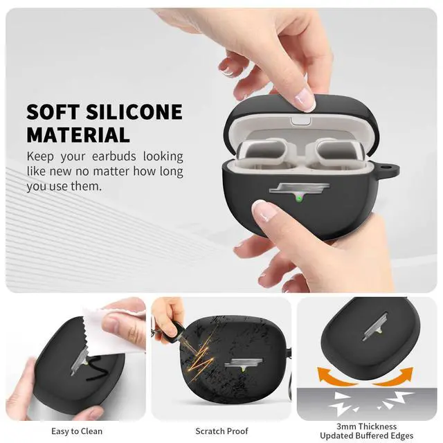 Add Portable CarabinerThe Ultra Open Earbuds case cover is precision cut, with a reserved cutout for the headphone logo part, keeping its front logo visible, and it comes with a keychain, allowing you to easily carry the Ultra Open Earbuds anywhere.