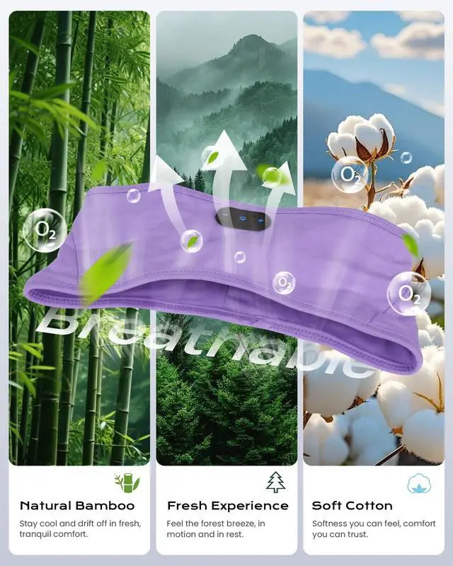 Sleep Headphones Bamboo Cotton Headband, Wireless Bluetooth 5.4 Headphones for Sleeping Side Sleepers, Sleeping Headband for Men & Women, Ideal Gift for Travel, Workout, Yoga