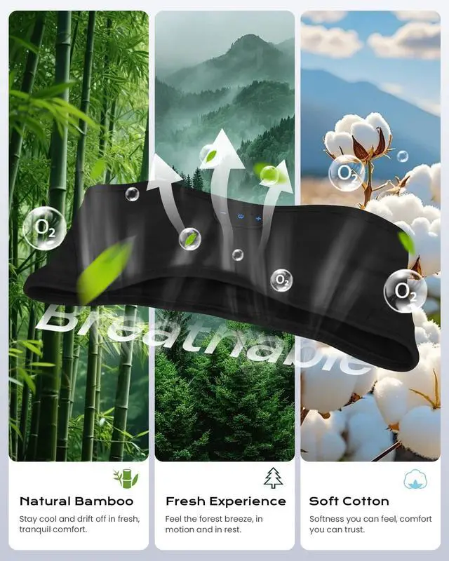 Sleep Headphones Bamboo Cotton Headband, Wireless Bluetooth 5.4 Headphones for Sleeping Side Sleepers, Sleeping Headband for Men & Women, Ideal Gift for Travel, Workout, Yoga(Noble Black)