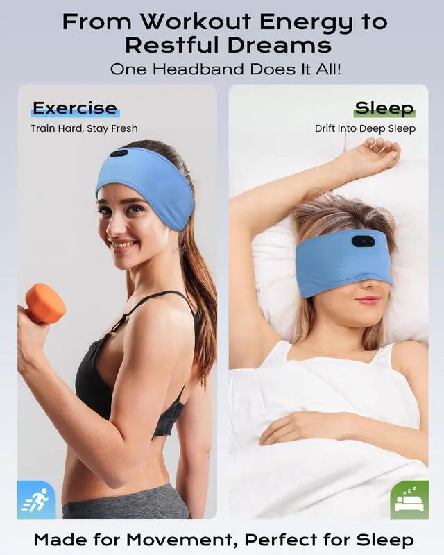 Dual-Use Design: Sleep/Sports Headphones - Ideal for side sleepers and athletes alike. By day, it's a comfortable, sweat-wicking headband for workouts. By night, it transforms into effective sleep headphones and a mild noise-reducing sleep aid to block distractions and promote restful sleep.