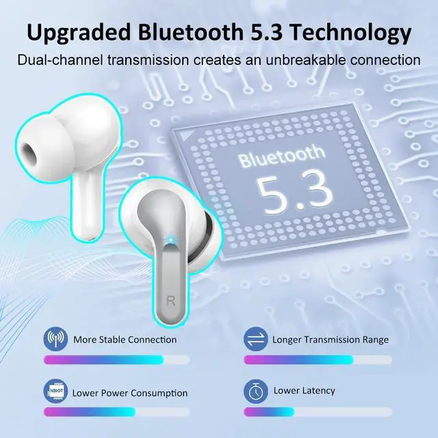 Leading Bluetooth V5.3 Technology and One-Step Auto Pairing: Utilizing advanced Bluetooth 5.3, these wireless earbuds support HSP, HFP, A2DP, and AVRCP, delivering an unparalleled audio experience with faster transmission speed, stronger connection stability, and longer Bluetooth range. Once taken from the charging case, the earbuds will pair with each other automatically; simply select them from your Bluetooth list to connect, and youll be enjoying music in seconds.